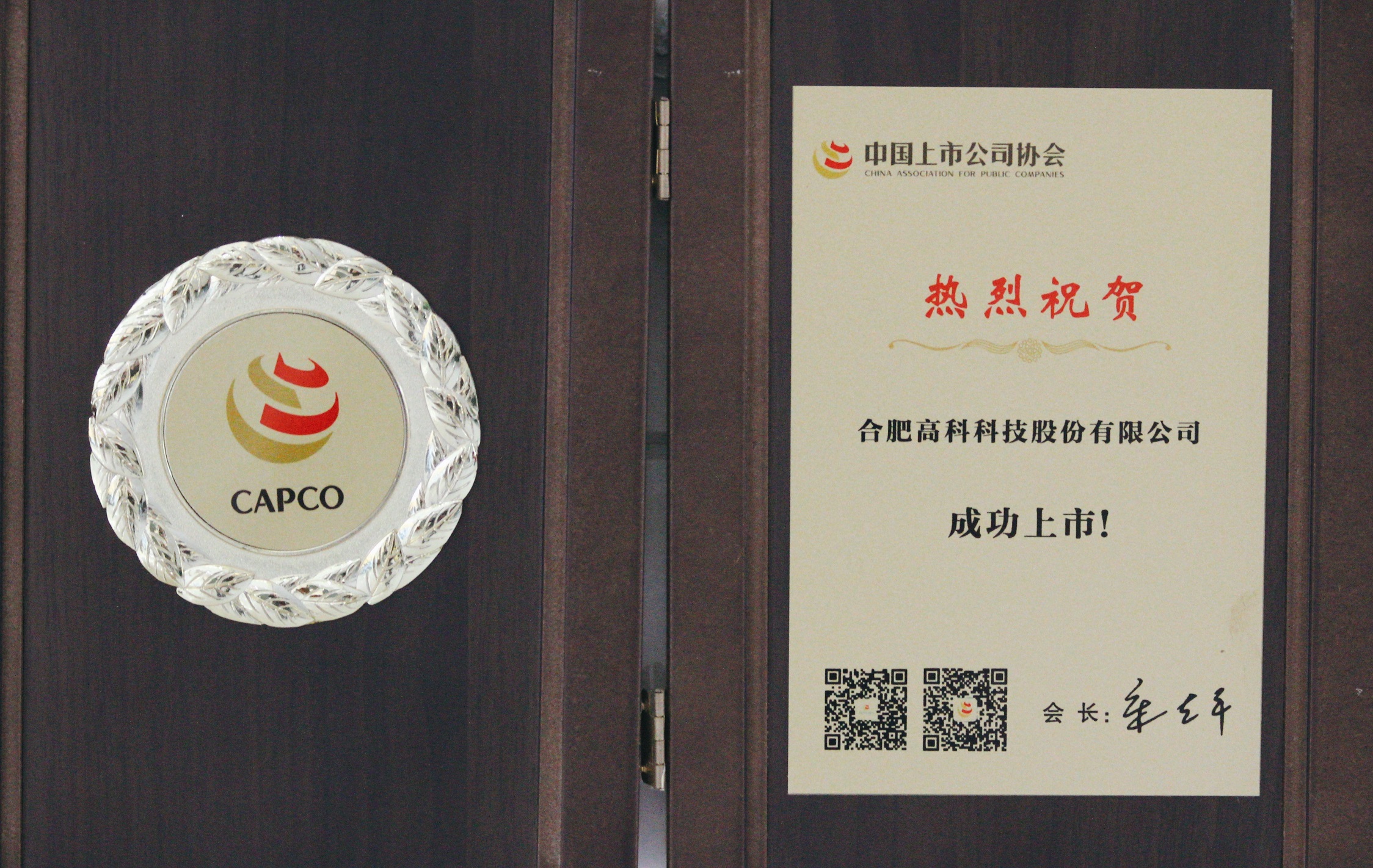 中國上市公司協會祝合肥高科成功上市